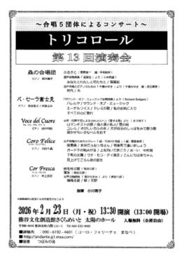 2ŒŽ23“ú(ŒŽj)‘æ13‰ñ@ƒgƒŠƒRƒ[ƒ‹‰‰‘t‰ï@`‡¥‚T’c‘̂ɂæ‚éƒRƒ“ƒT[ƒg`